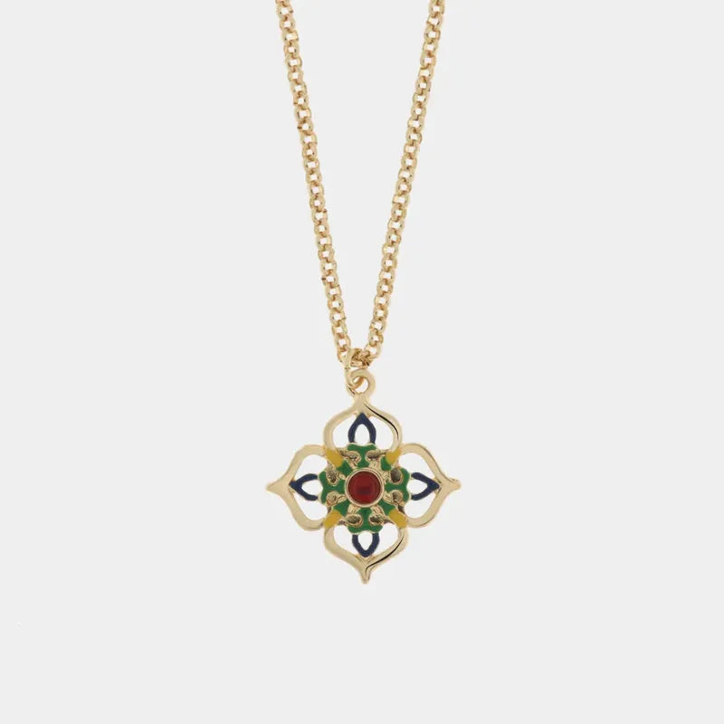 Collana in Metallo con croce pendente impreziosita da maioliche