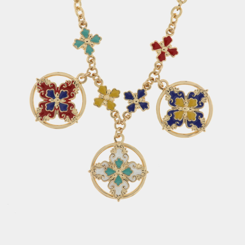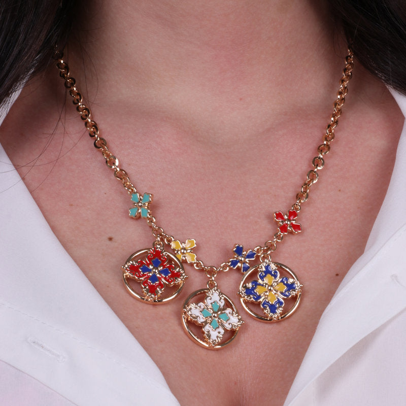 Collana in Metallo con croci di Malta colorate pendenti