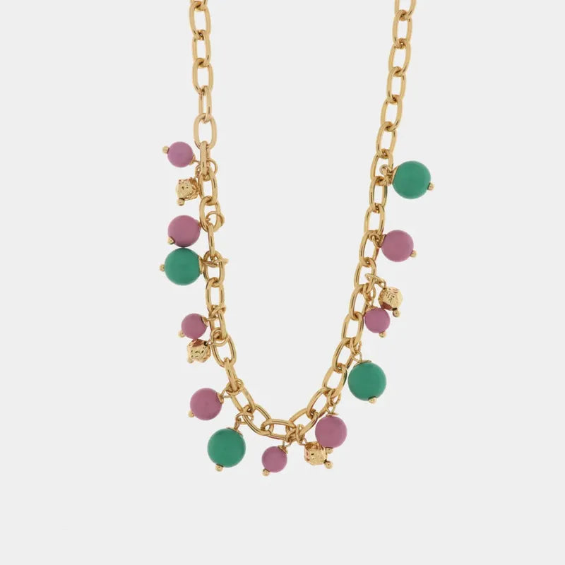 Collana in Metallo con pietre rosa e verdi