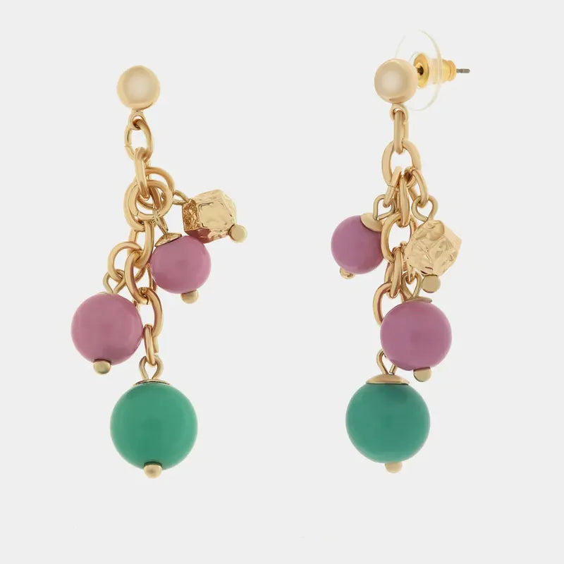 Orecchini in Metallo con pietre rosa e verdi