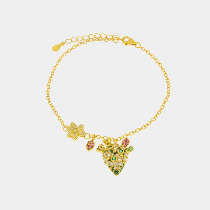 Bracciale in Argento 925 con cactus e zirconi colorate