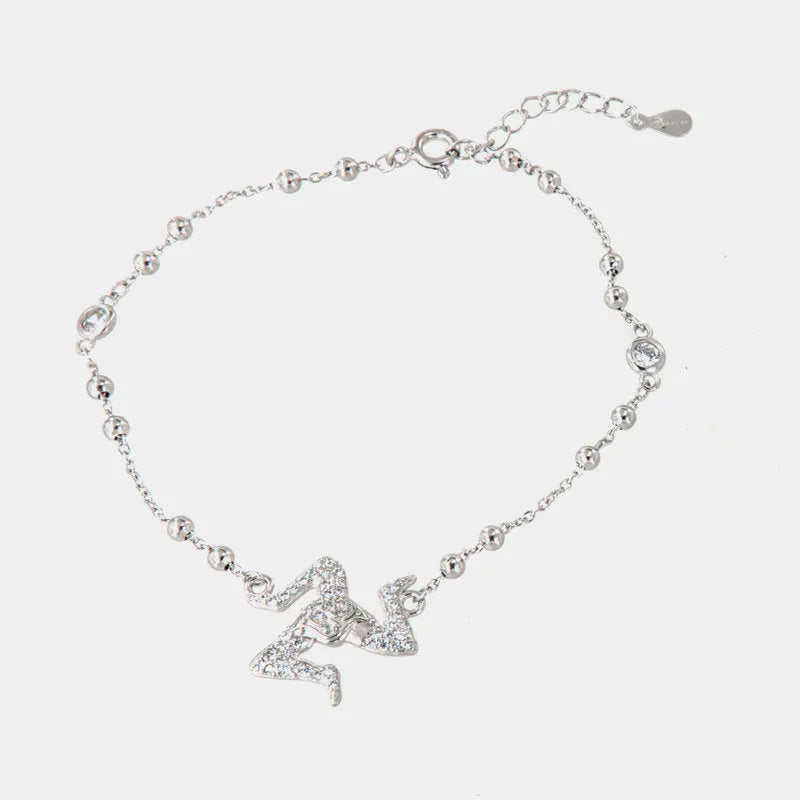 Bracciale in Argento 925 con ciondolo trinacria siciliana, impreziosita da zirconi bianchi