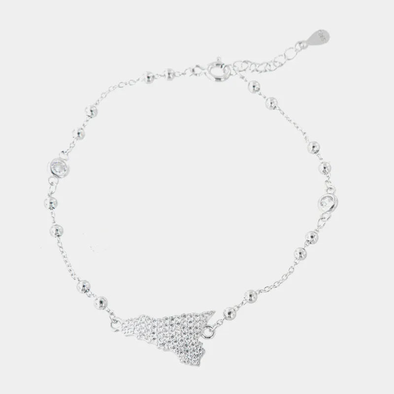 Bracciale in Argento 925 con forma isola siciliana, impreziosito da pavè di zirconi bianchi