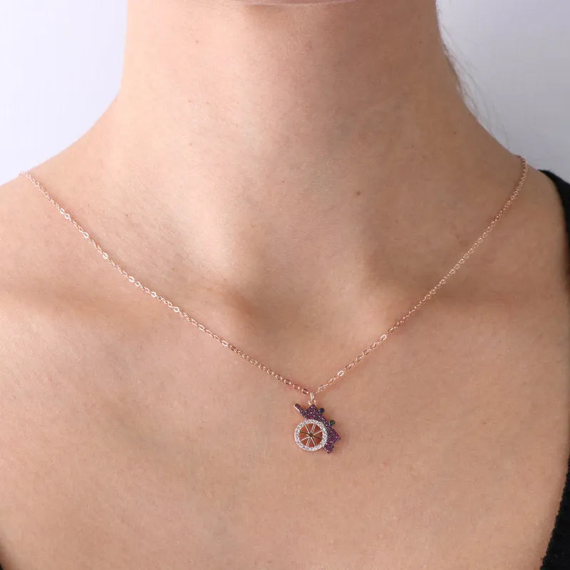 Collana in Argento 925 con ciondolo carretto siciliano, impreziosito da zirconi rossi e bianchi su base brunita