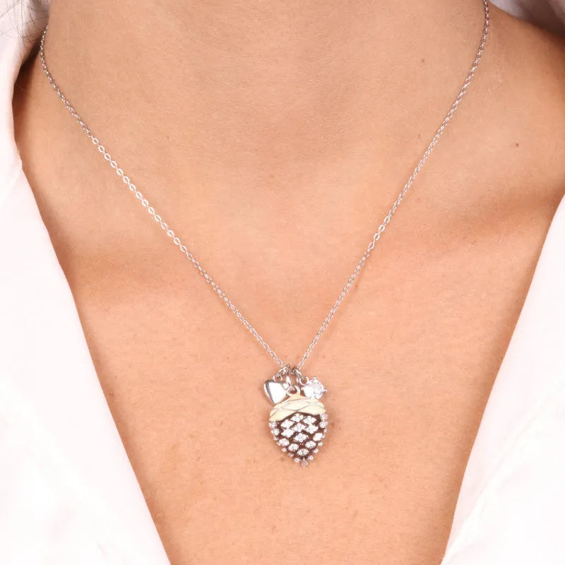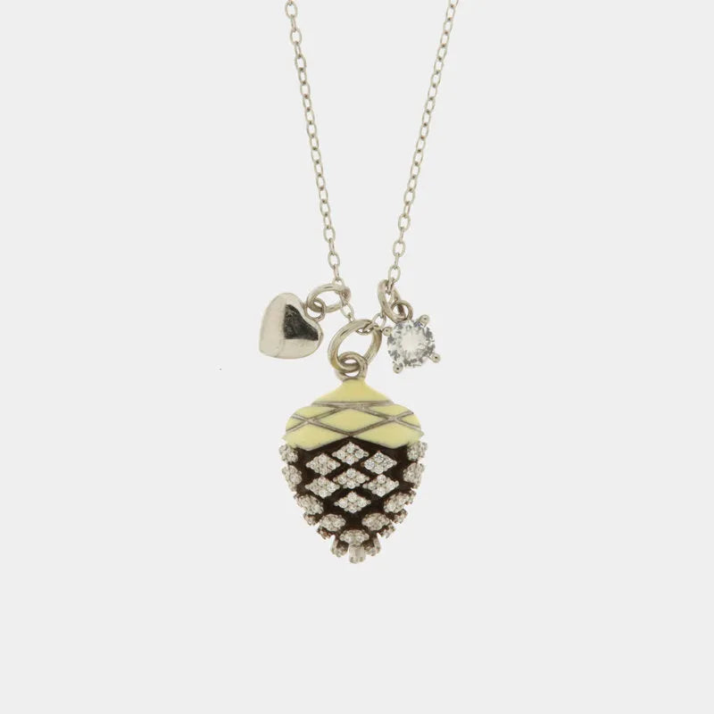 Collana in Argento 925 con pigna portafortuna impreziosito da zirconi bianchi e cuore pendente