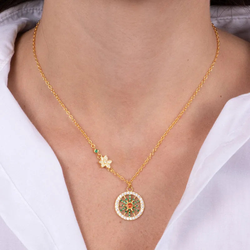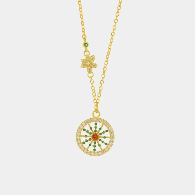 Collana in Argento 925 con ruota siciliana e zirconi colorati
