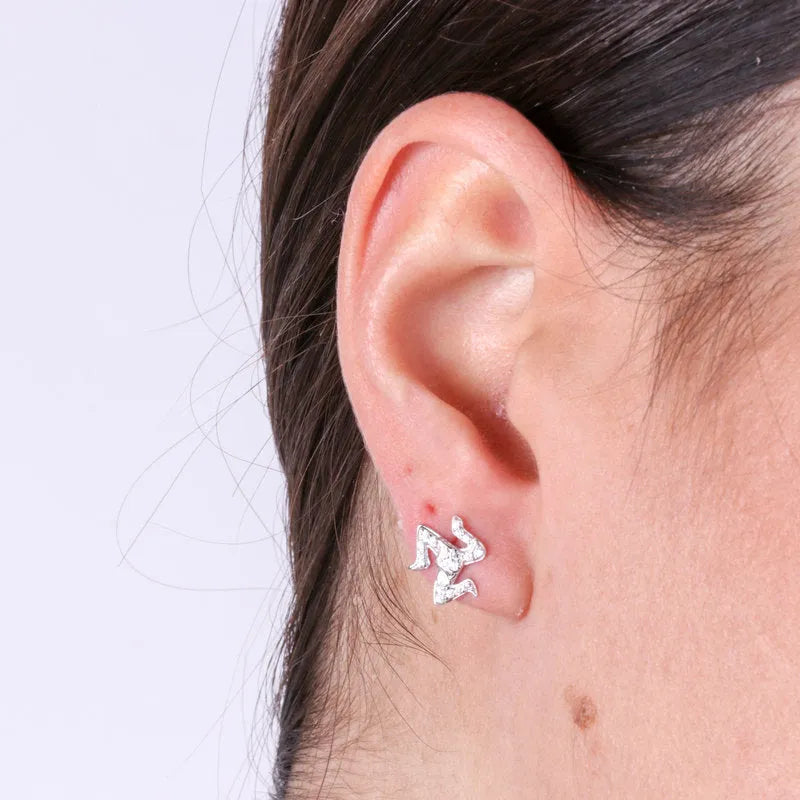 Orecchini in Argento 925 a forma di trinacria impreziositi da  pavè di zirconi bianchi