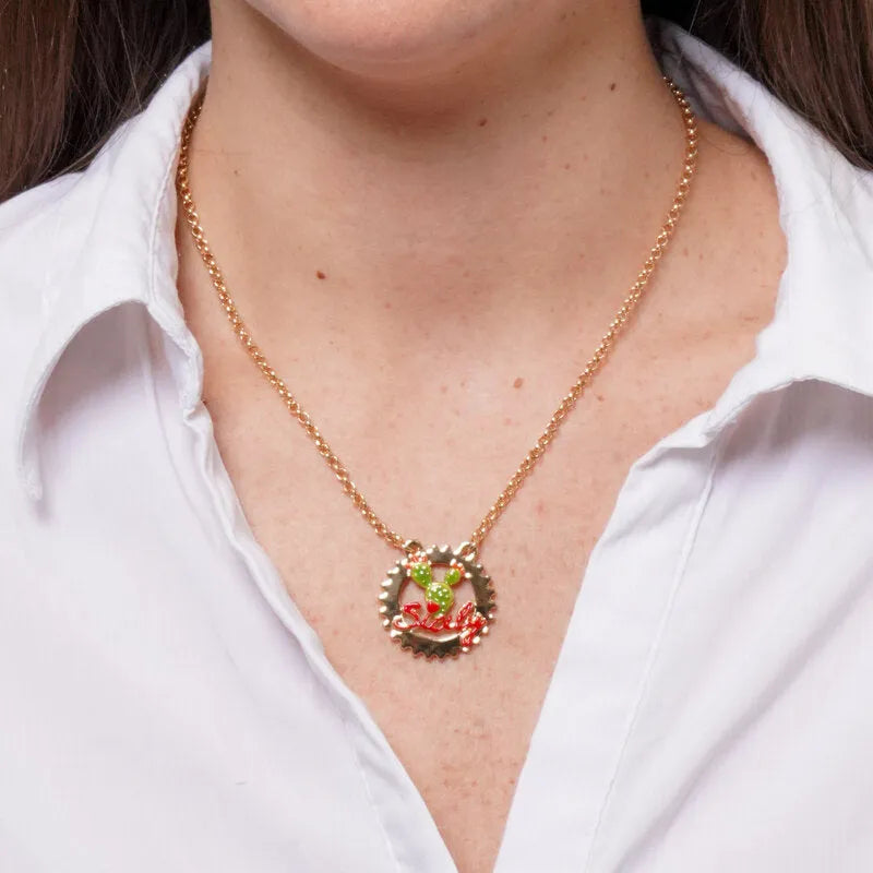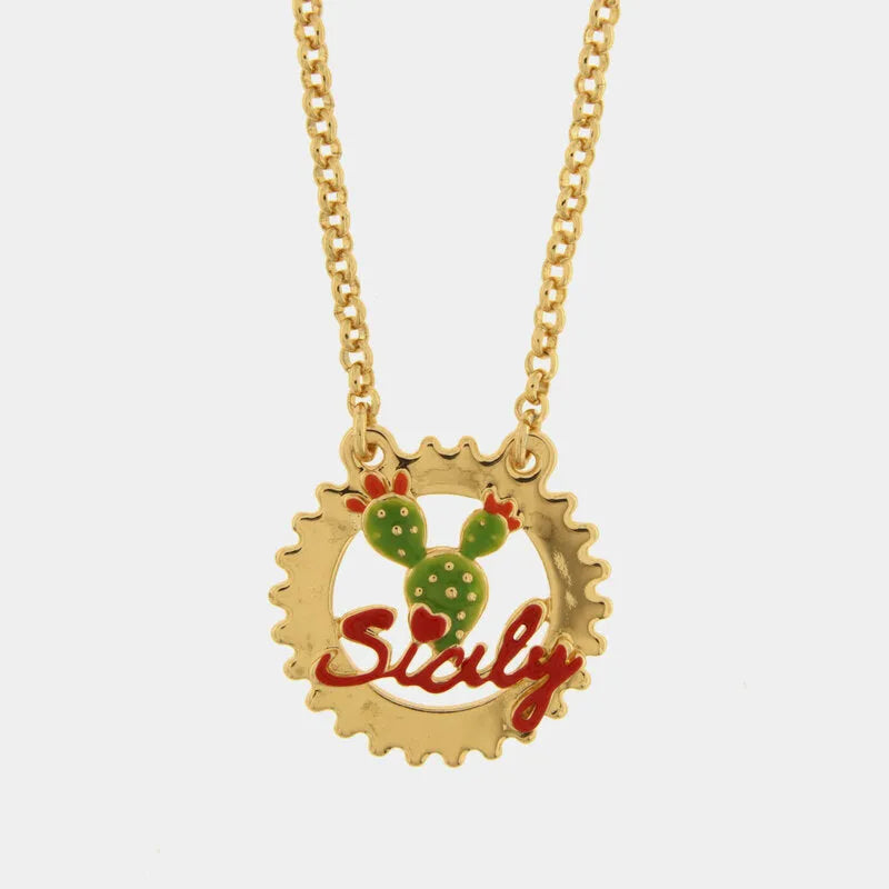 Collana in Metallo con scritta Sicily e Fico
