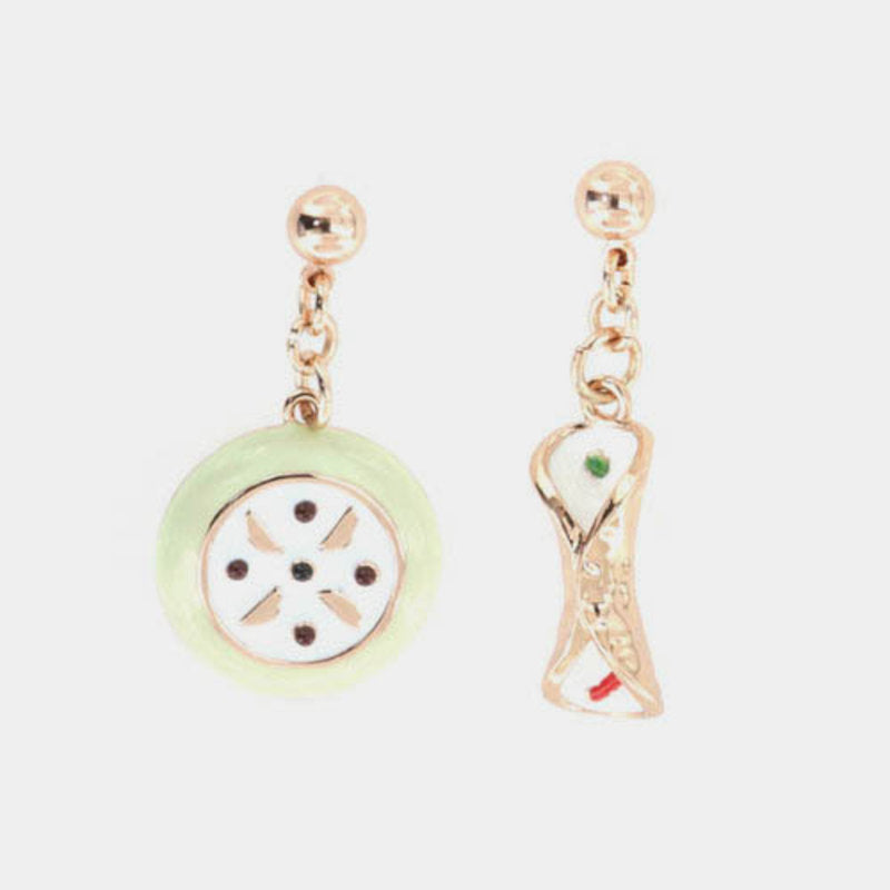 Orecchini in Metallo con cannolo e cassata pendenti, impreziositi da smalti colorati