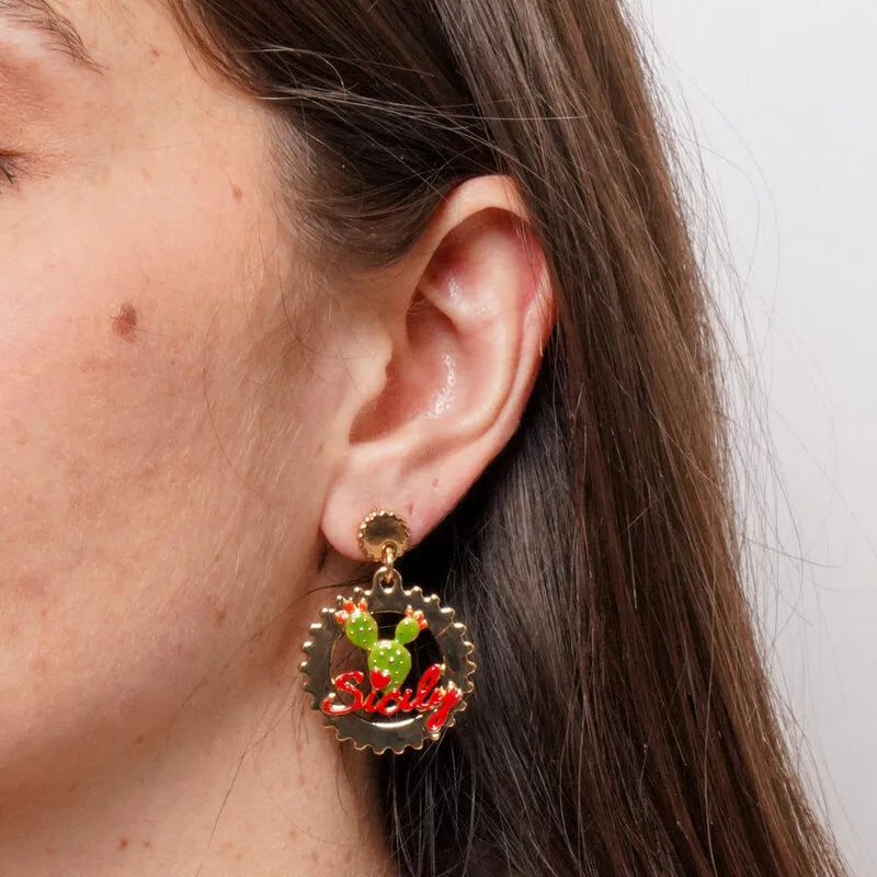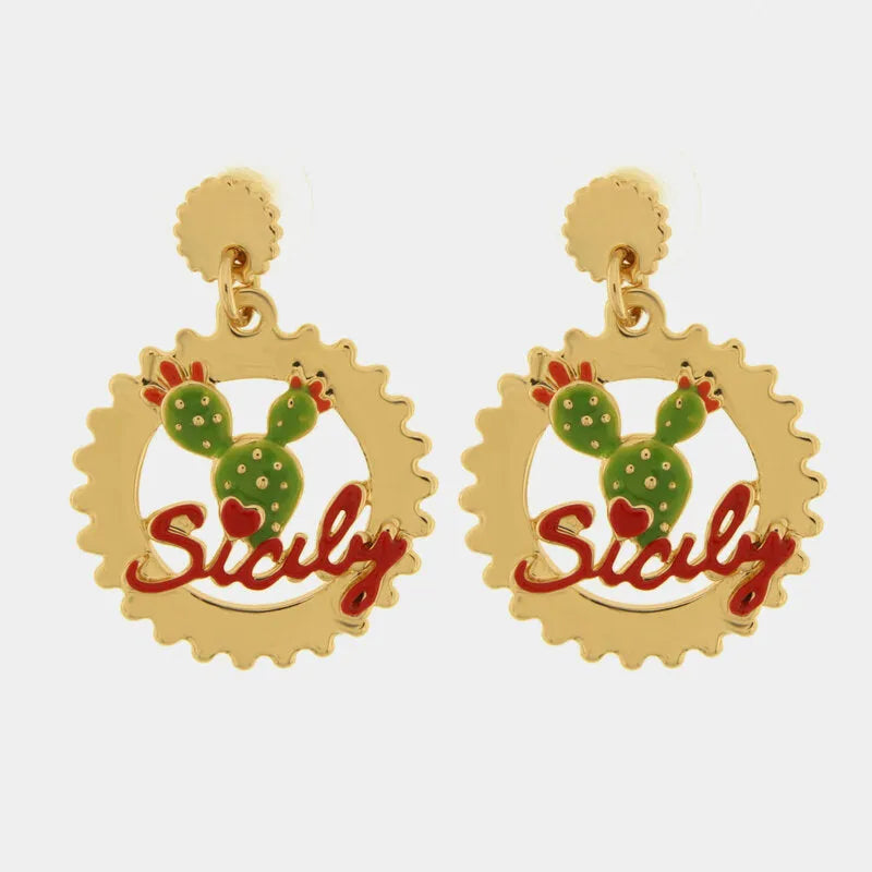 Orecchini in Metallo con scritta Sicily e Fico