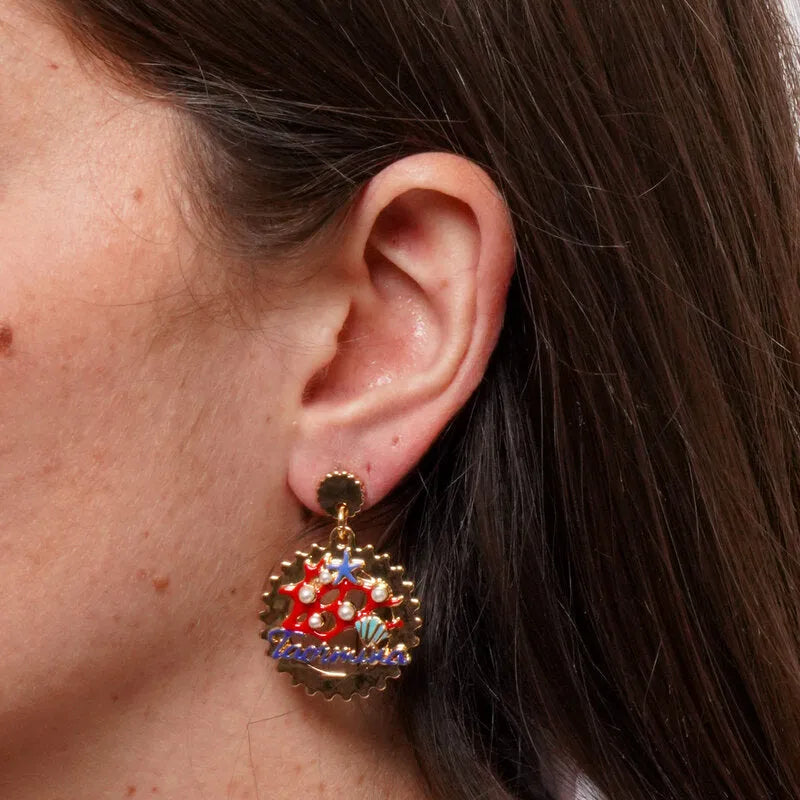 Orecchini in Metallo con scritta Taormina e Design ispirato ai Fondali Marini