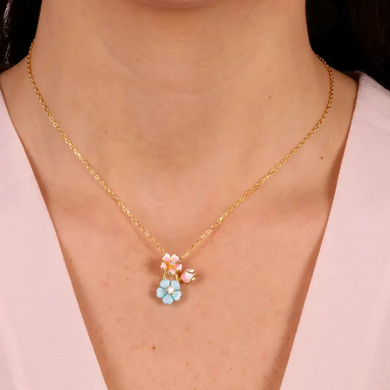 Collana in Argento 925 con fiori in colore pastello