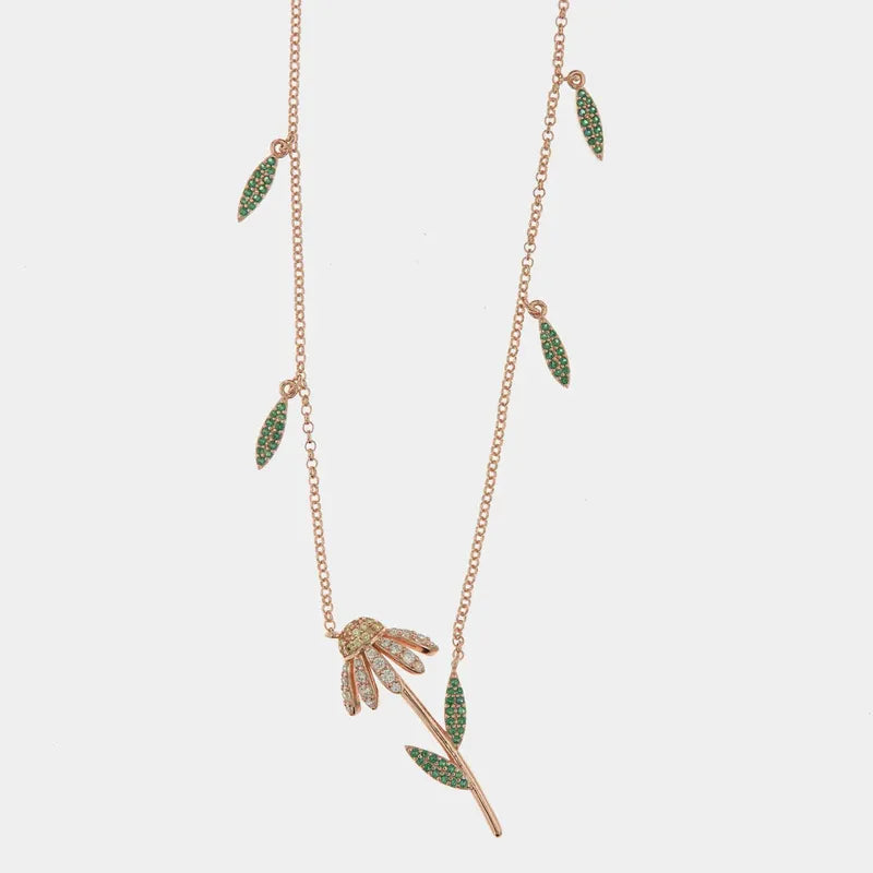 Collana in Argento 925 con foglie e fiori impreziositi da zirconi colorati