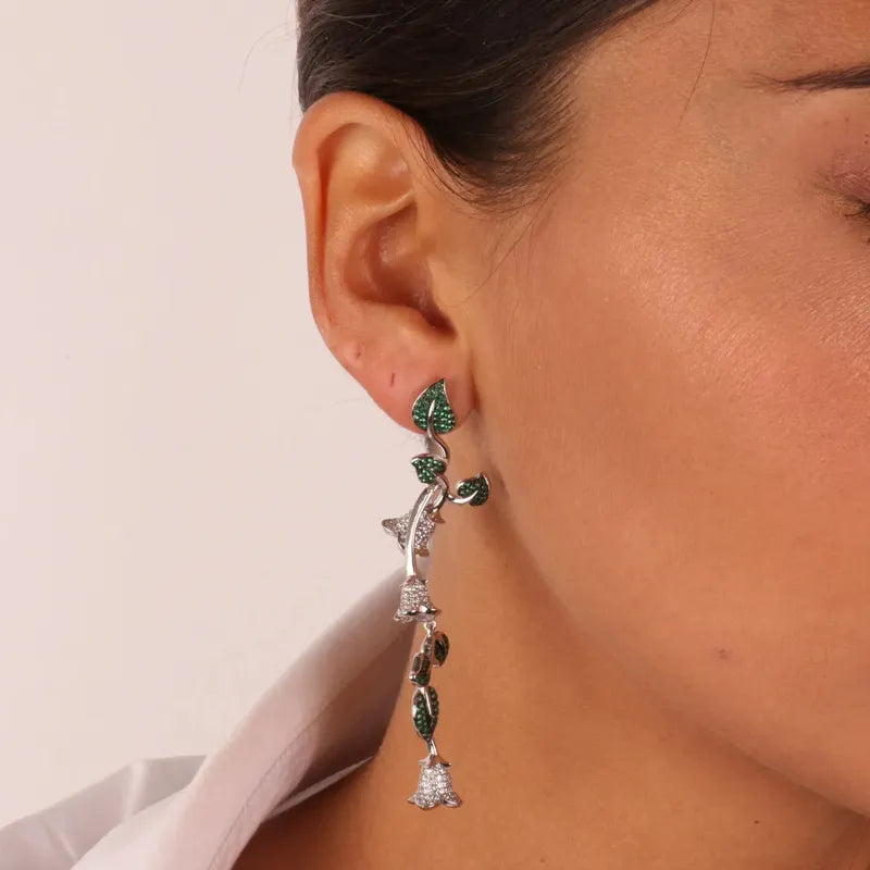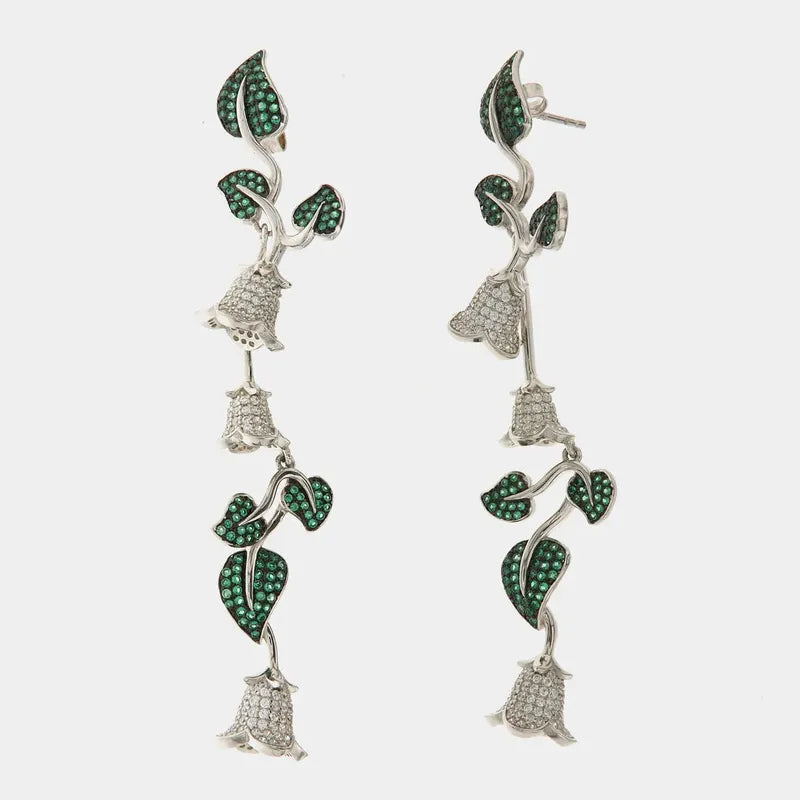 Orecchini in Argento 925 pendenti con foglie e fiori impreziositi da zirconi
