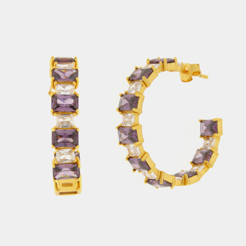 Orecchini in Argento 925 a cerchio con zirconi viola