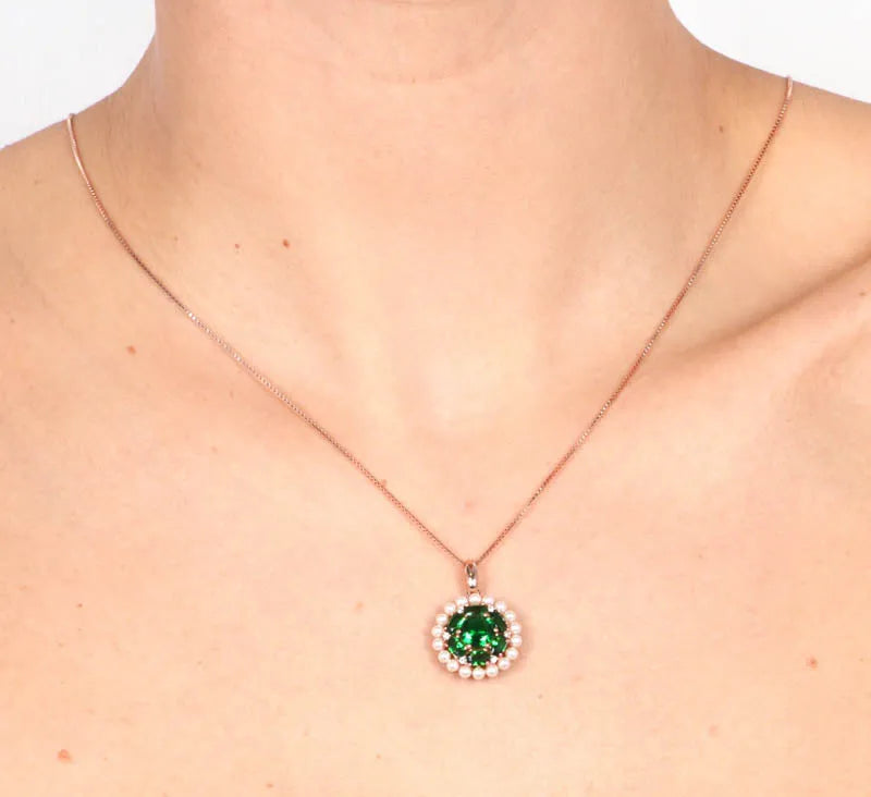 Collana in Argento 925 con pendente zirconato smeraldo e perline