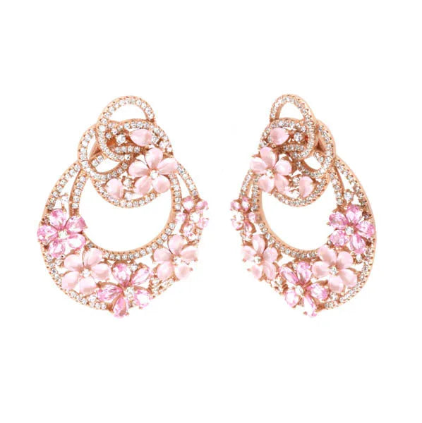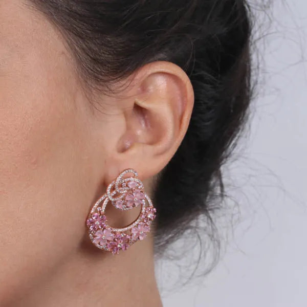 Orecchini in Argento 925 a cerchio pendente con fiori di zirconi dalle sfumature rosa e bianco