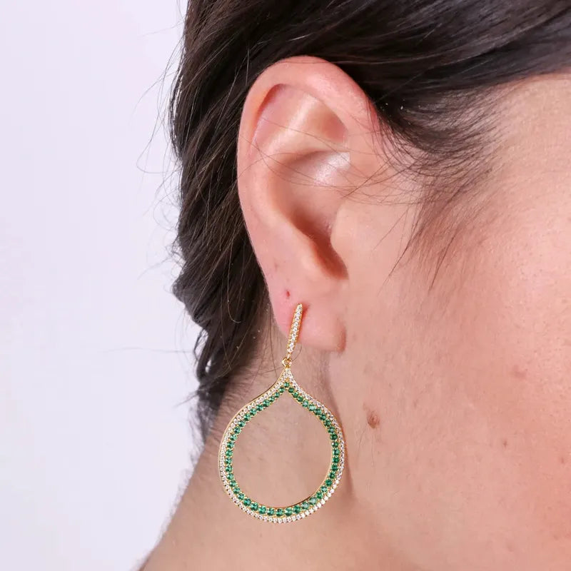 Orecchini in Argento 925 con forma ovale impreziosito da zirconi verdi