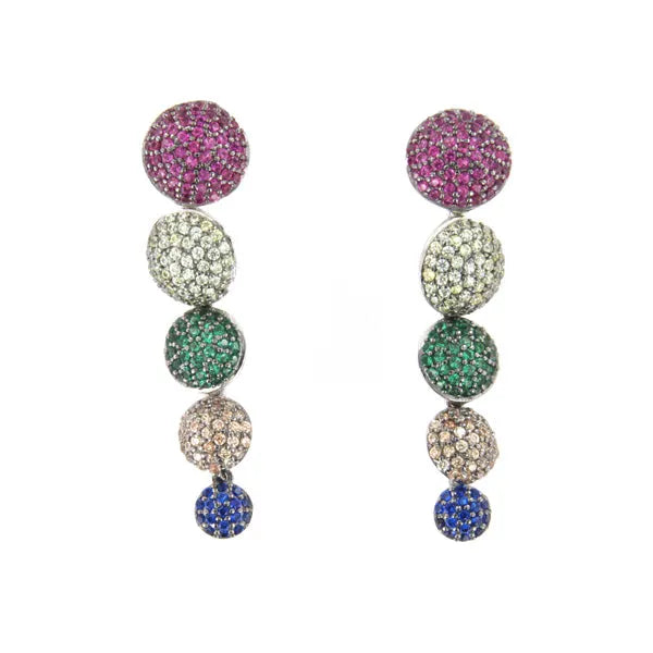 Orecchini in Argento 925 pendenti con semisfere di zirconi multicolore