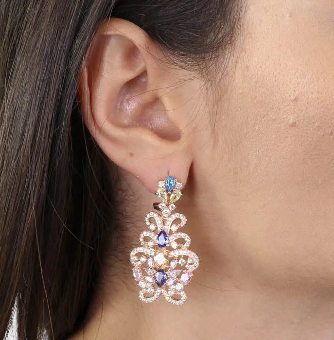 Orecchini in Argento 925 pendenti con zirconi multicolore