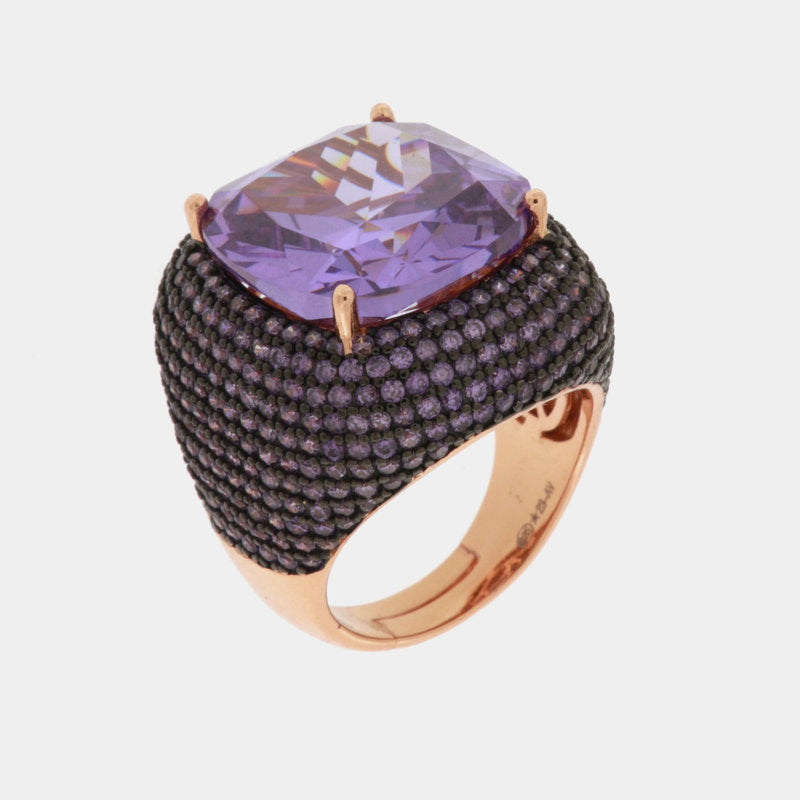 Anello in Argento 925 con grande zircone centrale viola con pavè di zirconi viola