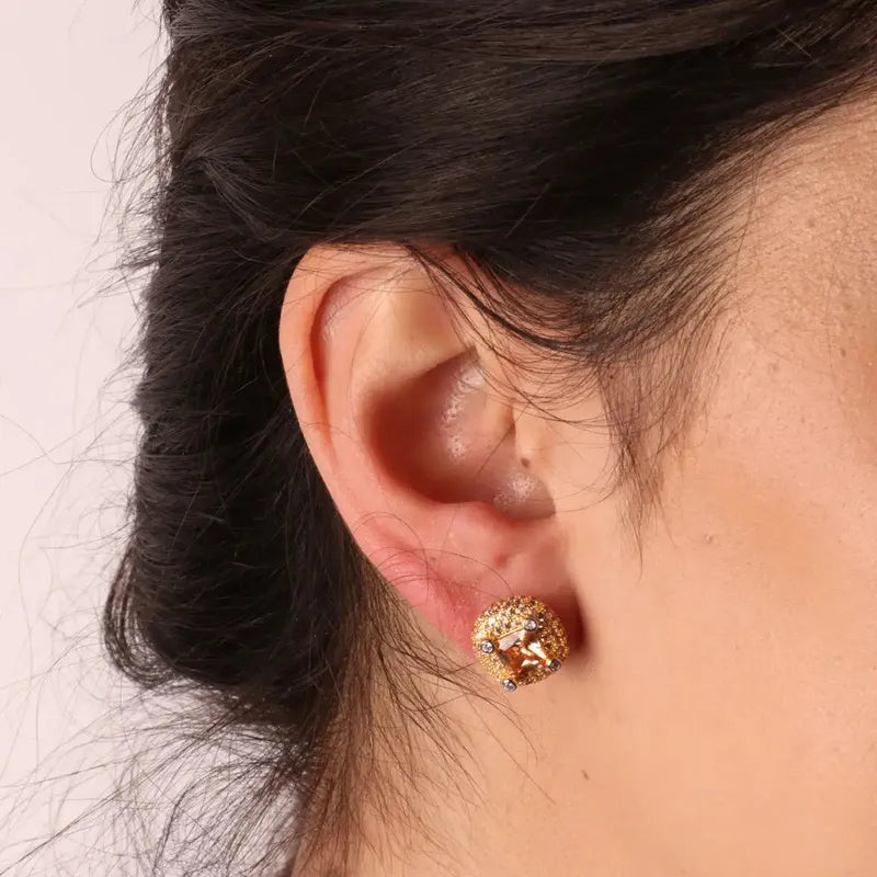 Orecchini in Argento 925 con zirconi bianchi e zircone centrale color champagne