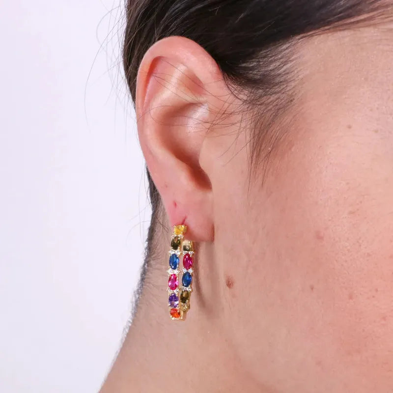 Orecchini in Argento 925 a cerchio con zirconi colorati