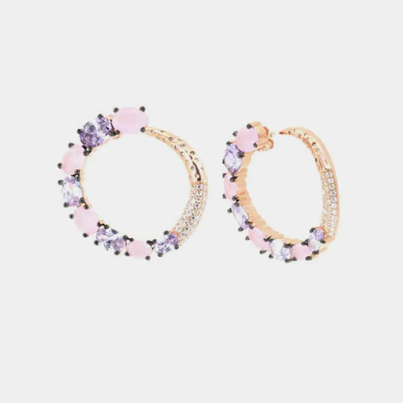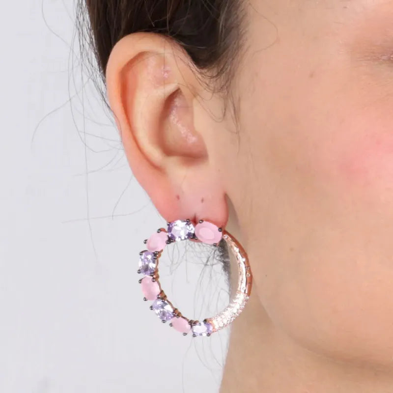 Orecchini in Argento 925 cerchio impreziosito da zirconi nelle sfumature del rosa