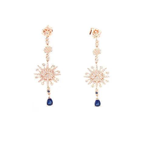 Orecchini in Argento 925 pendenti con zirconi bianchi e goccia in zircone color zaffiro