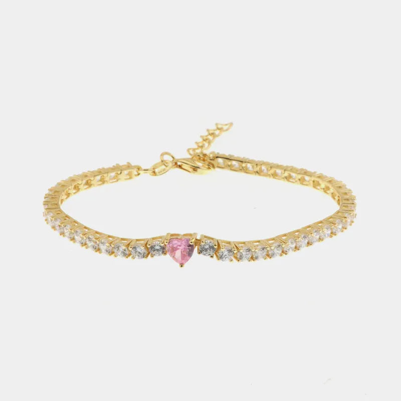 Bracciale in Argento 925 tennis con cuori in zirconi bianchi e rosa
