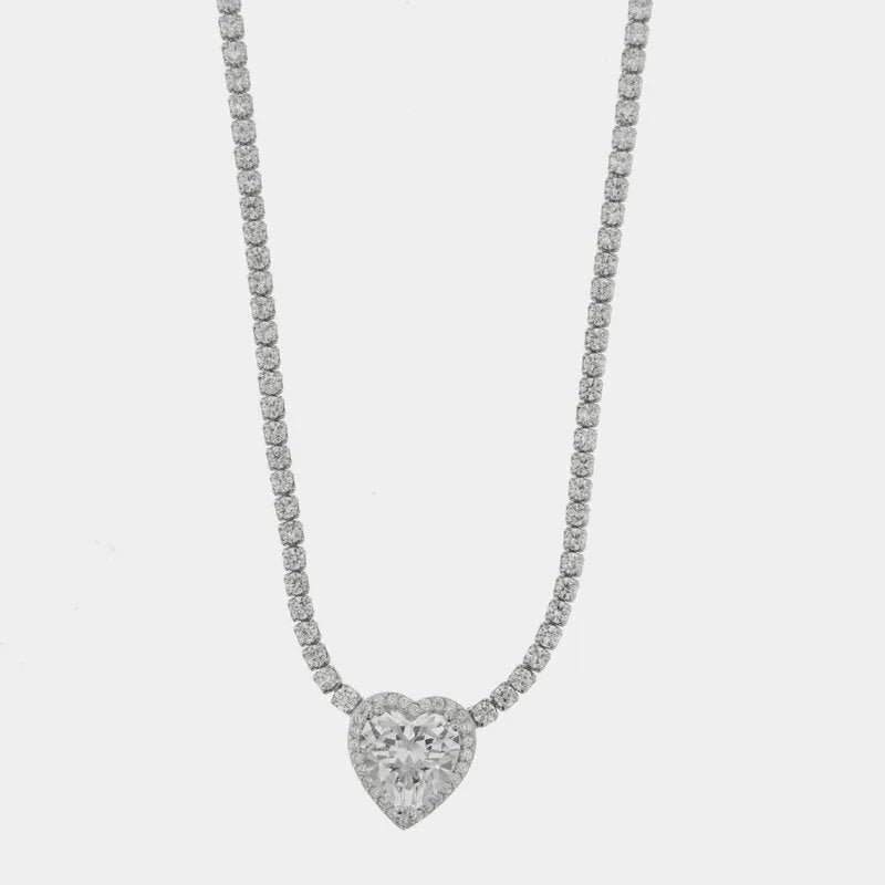 Collana in Argento 925 girocollo tennis con cuore tempestato da zirconi bianchi