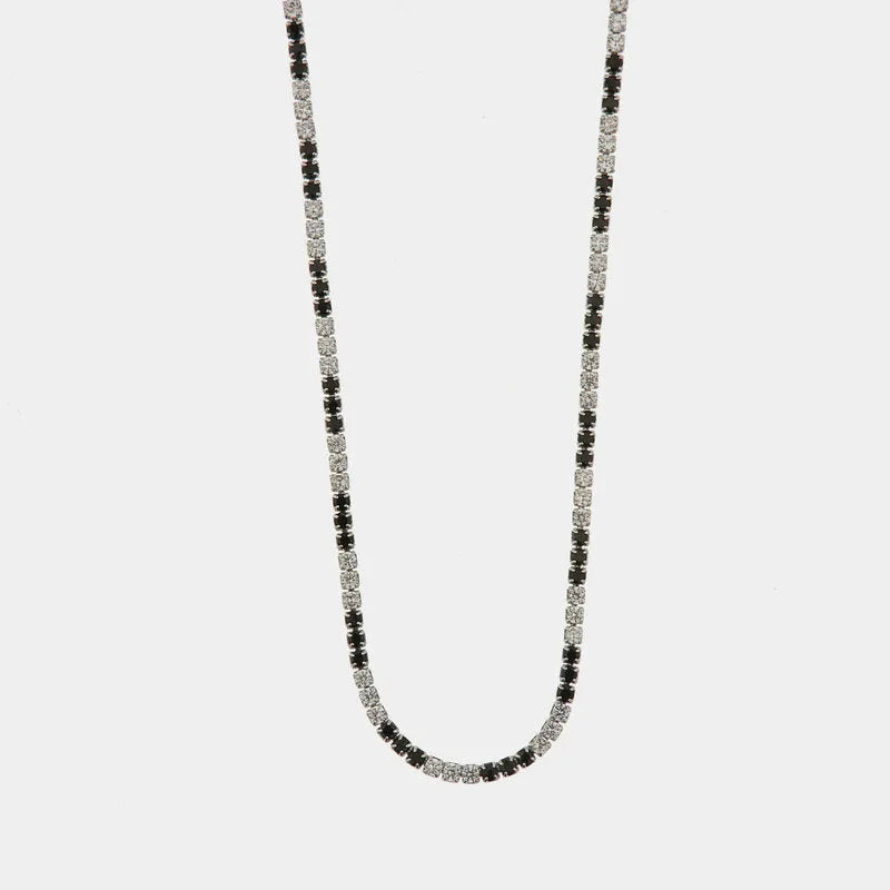 Collana in Argento 925 girocollo tennis con zirconi bianchi e neri
