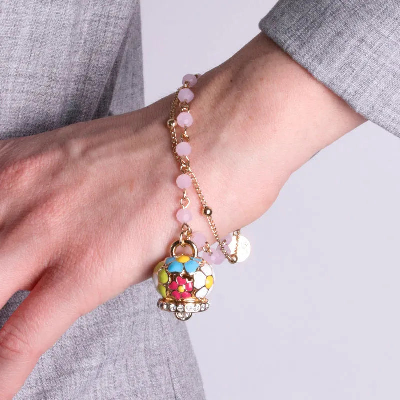 Bracciale in Metallo multifilo rosa con campana a fiori multicolor