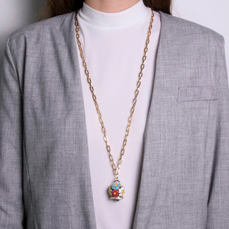 Collana in Metallo con campana a fiori multicolor