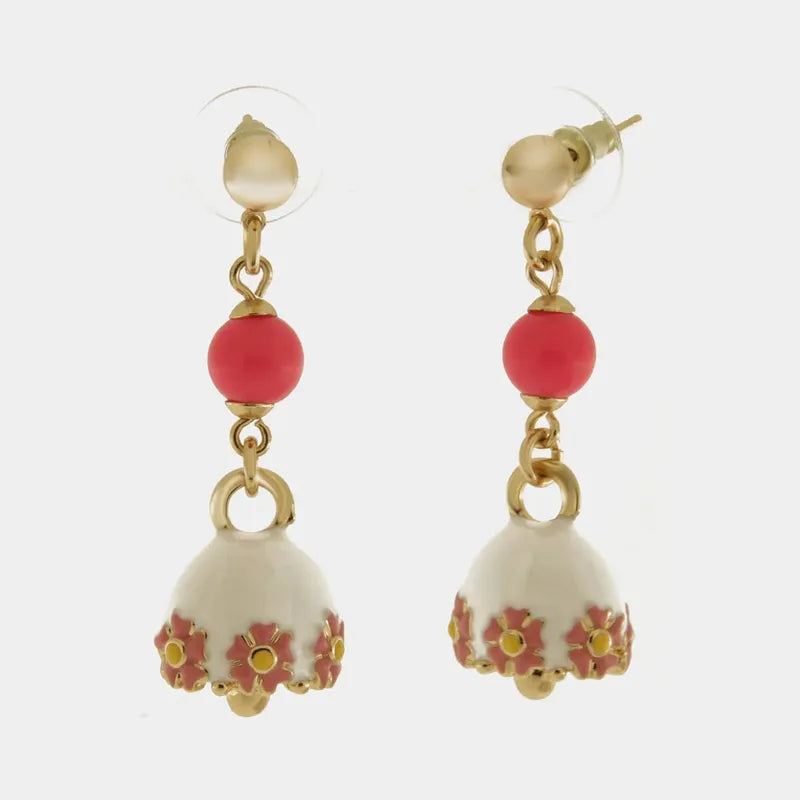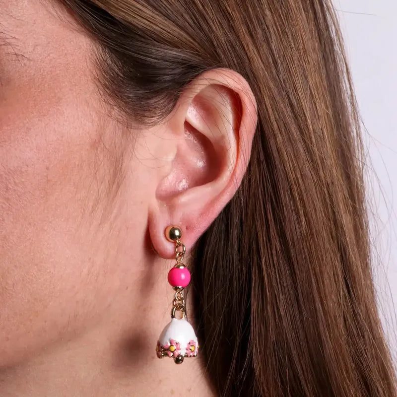 Orecchini in Metallo con campanella bianca  fiori e perla