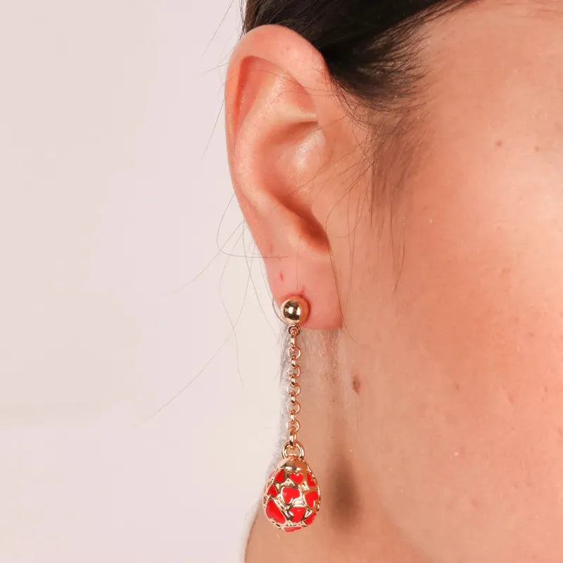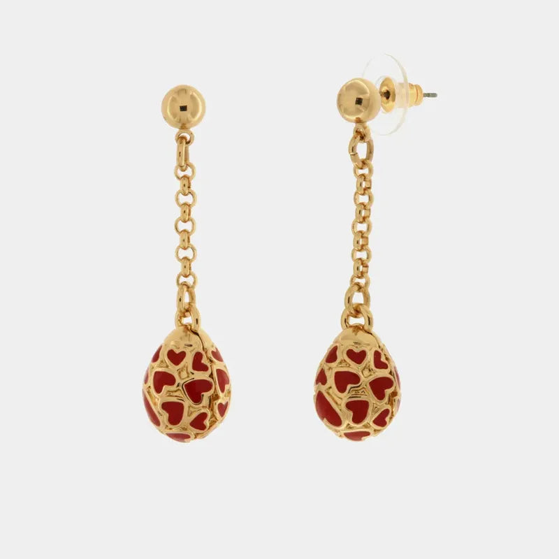 Orecchini in Metallo con uova impreziosite da cuori rossi
