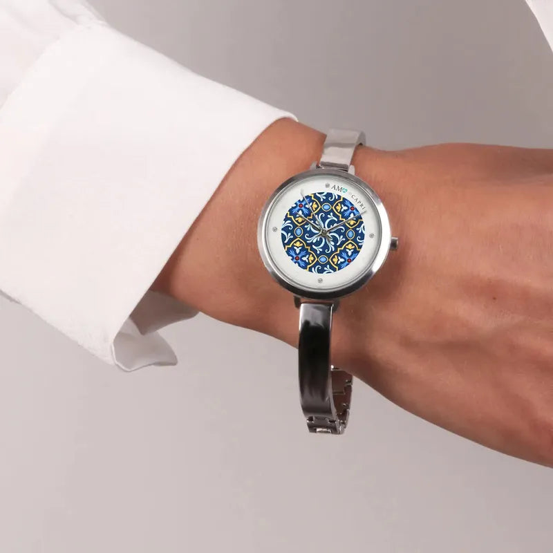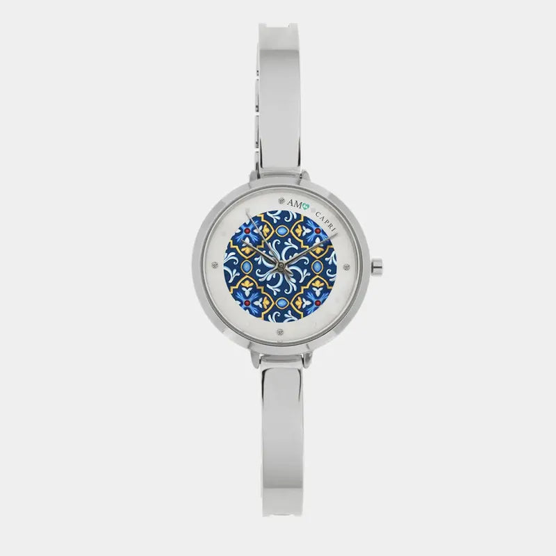 Orologio Analogico Met. con maiolica impreziosita da smalto colorato e cristalli