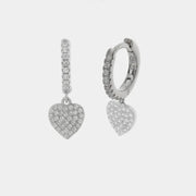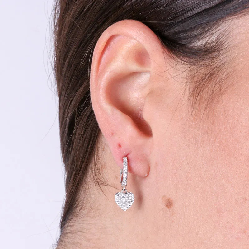 Orecchini in Argento 925 cerchietto con cuore pendente impreziosito da zirconi bianchi
