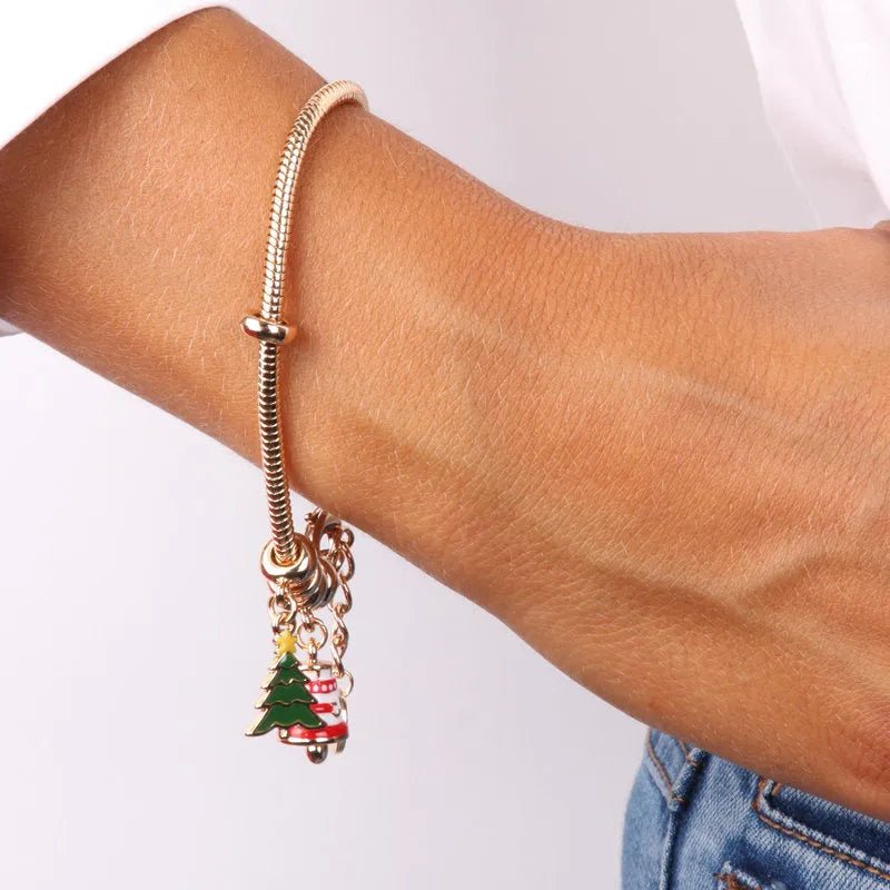 Bracciale in Metallo con pendenti a forma di albero e campanella portafortuna