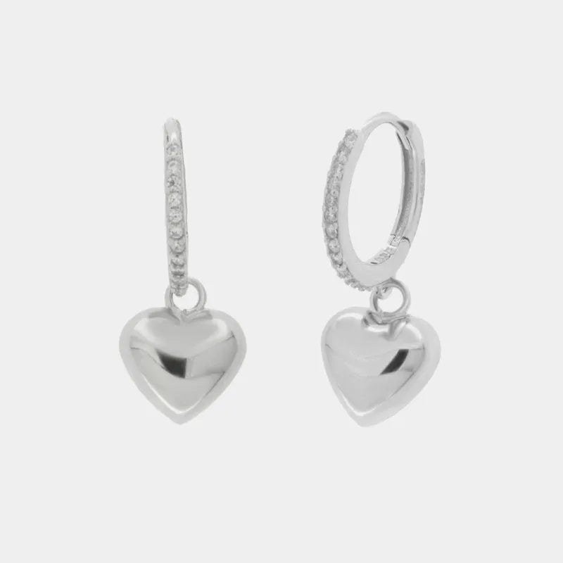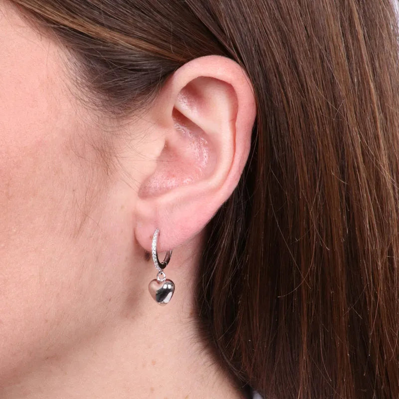 Orecchini in Argento 925 a cerchio con cuore pendente