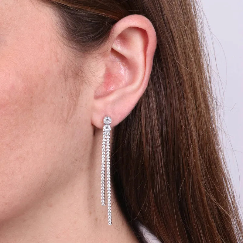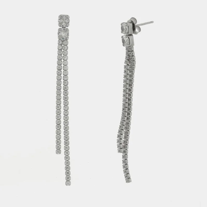 Orecchini in Argento 925 multifilo con zirconi pendenti