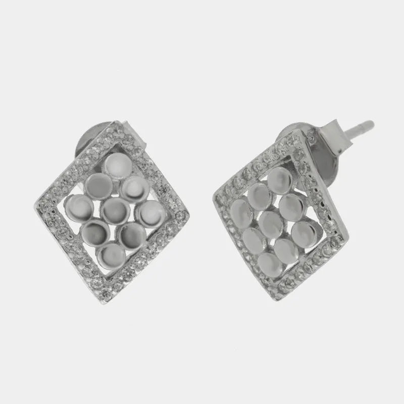 Orecchini in Argento 925 rombo con sfere e zirconi