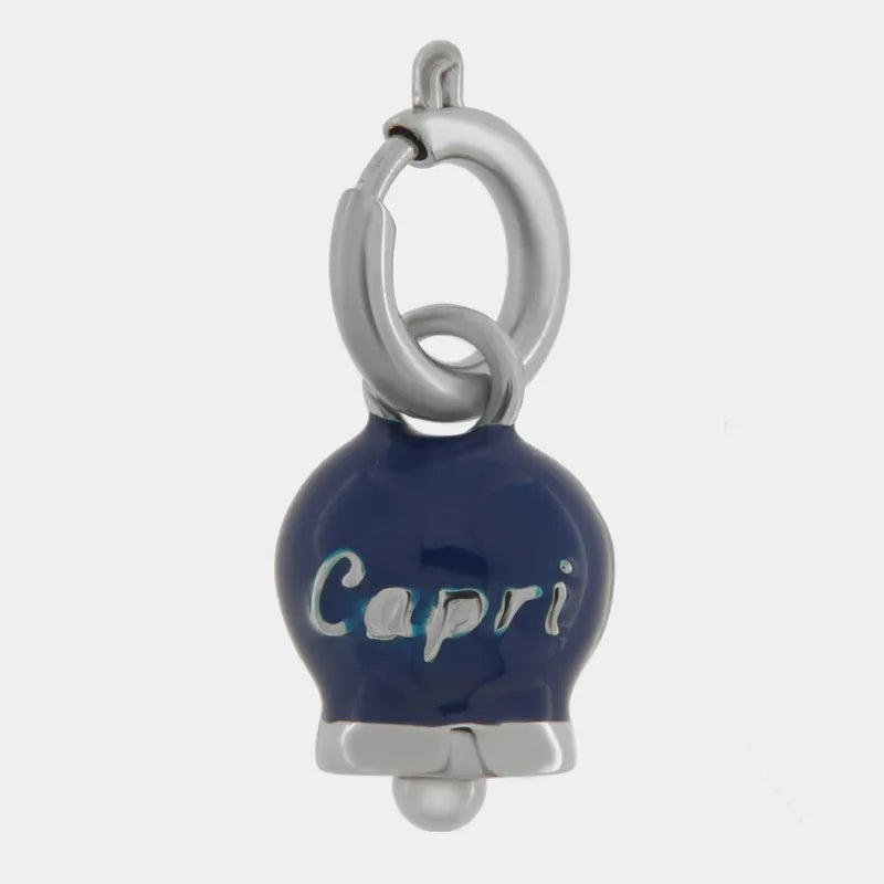 Ciondolo in Acciaio campanella blu con scritta Capri