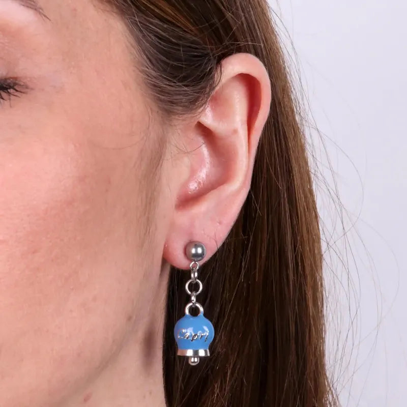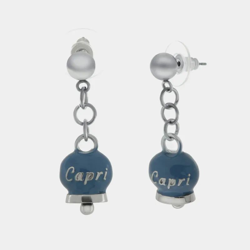 Orecchini in Acciaio con campanella pendente blu cobalto con scritta Capri