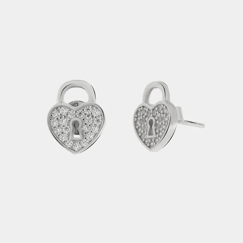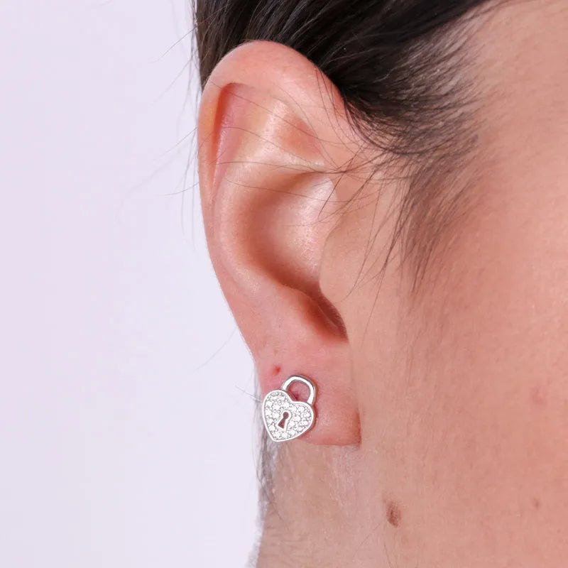 Orecchini in Argento 925 con lucchetto a forma di cuore, impreziosito da zirconi bianchi