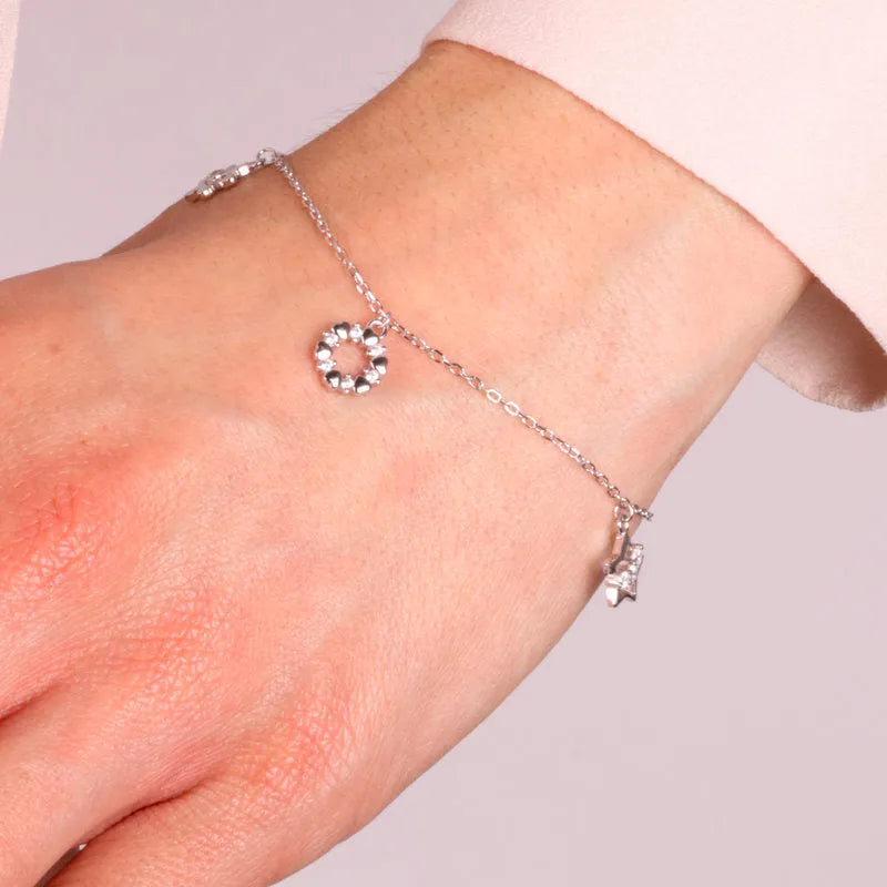 Bracciale in Argento 925 con pendenti a forma di cuori farfalla e stella
