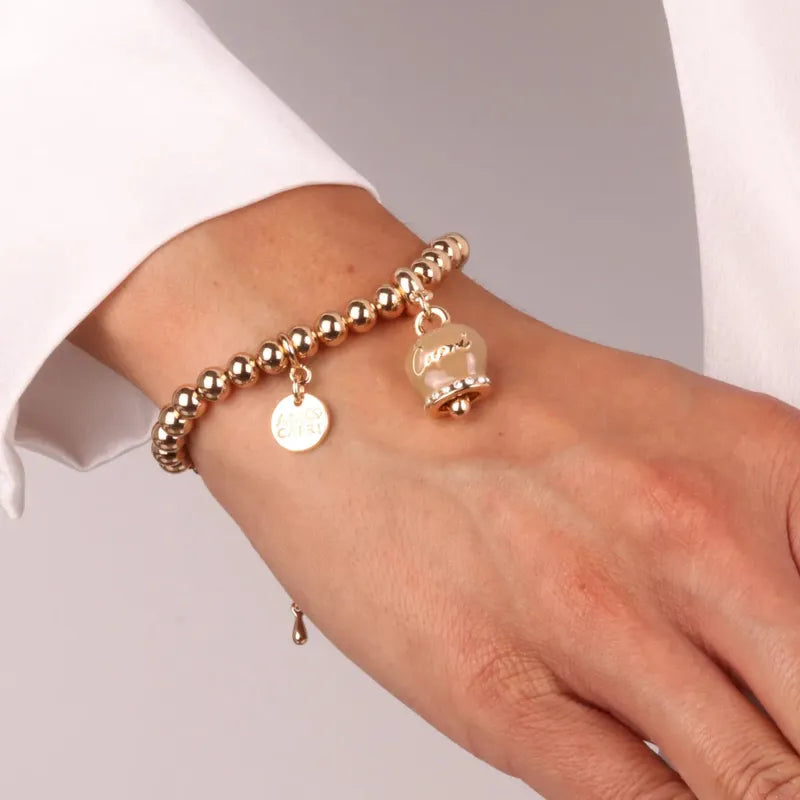Bracciale in Metallo con campanella scritta capri pendente impreziosita da cristalli e smalto caffè