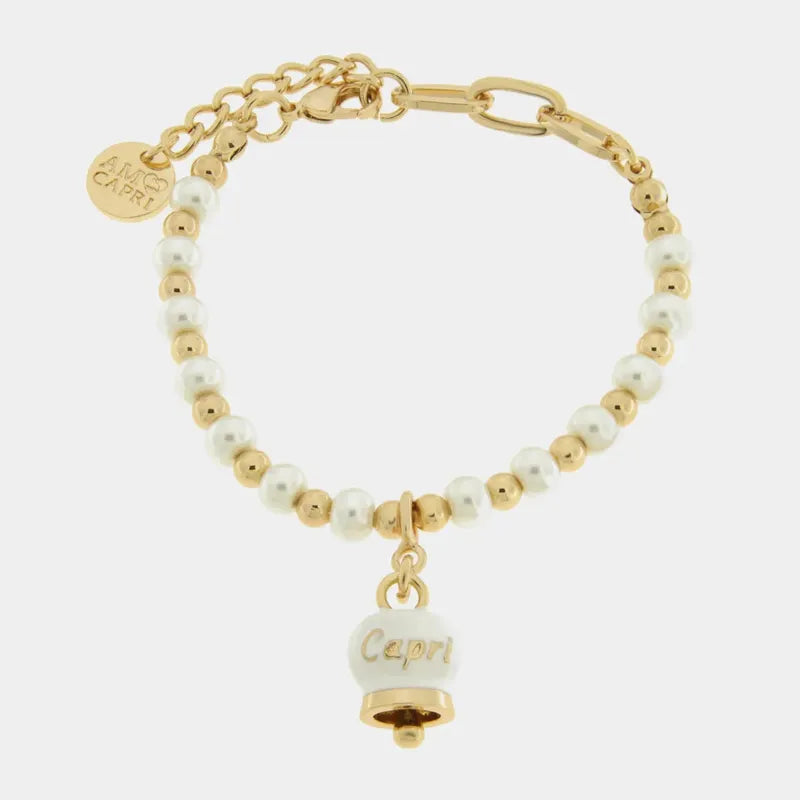 Bracciale in Metallo con sfere e campanella Capri bianca