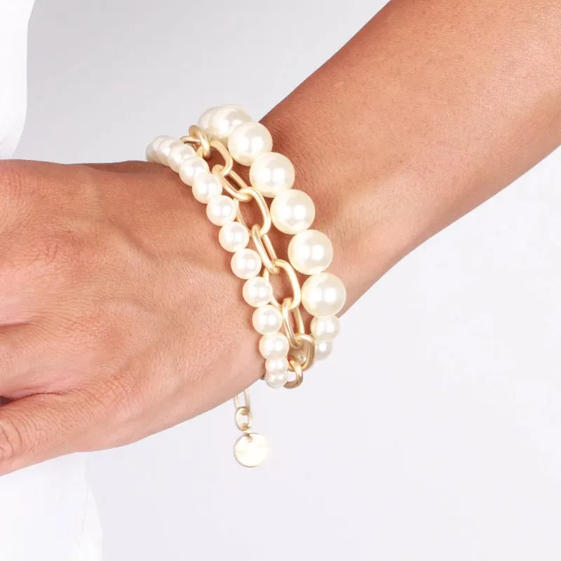 Mehrsträngiges Metallarmband mit Perlen und Ketten