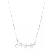 Halskette aus 925er Silber mit Anhänger in Form von drei Sternen, verziert mit einem hängenden weißen Kristall